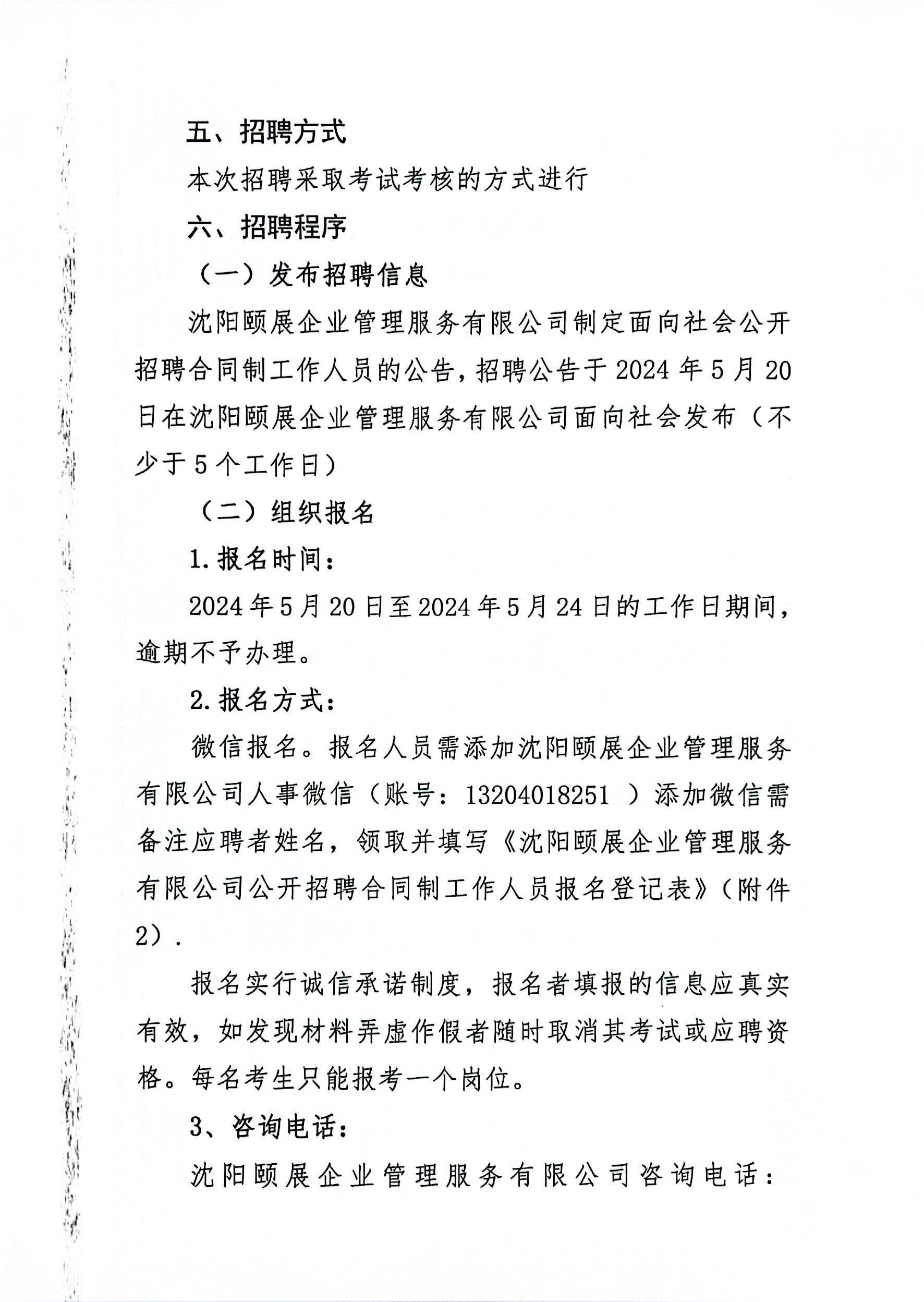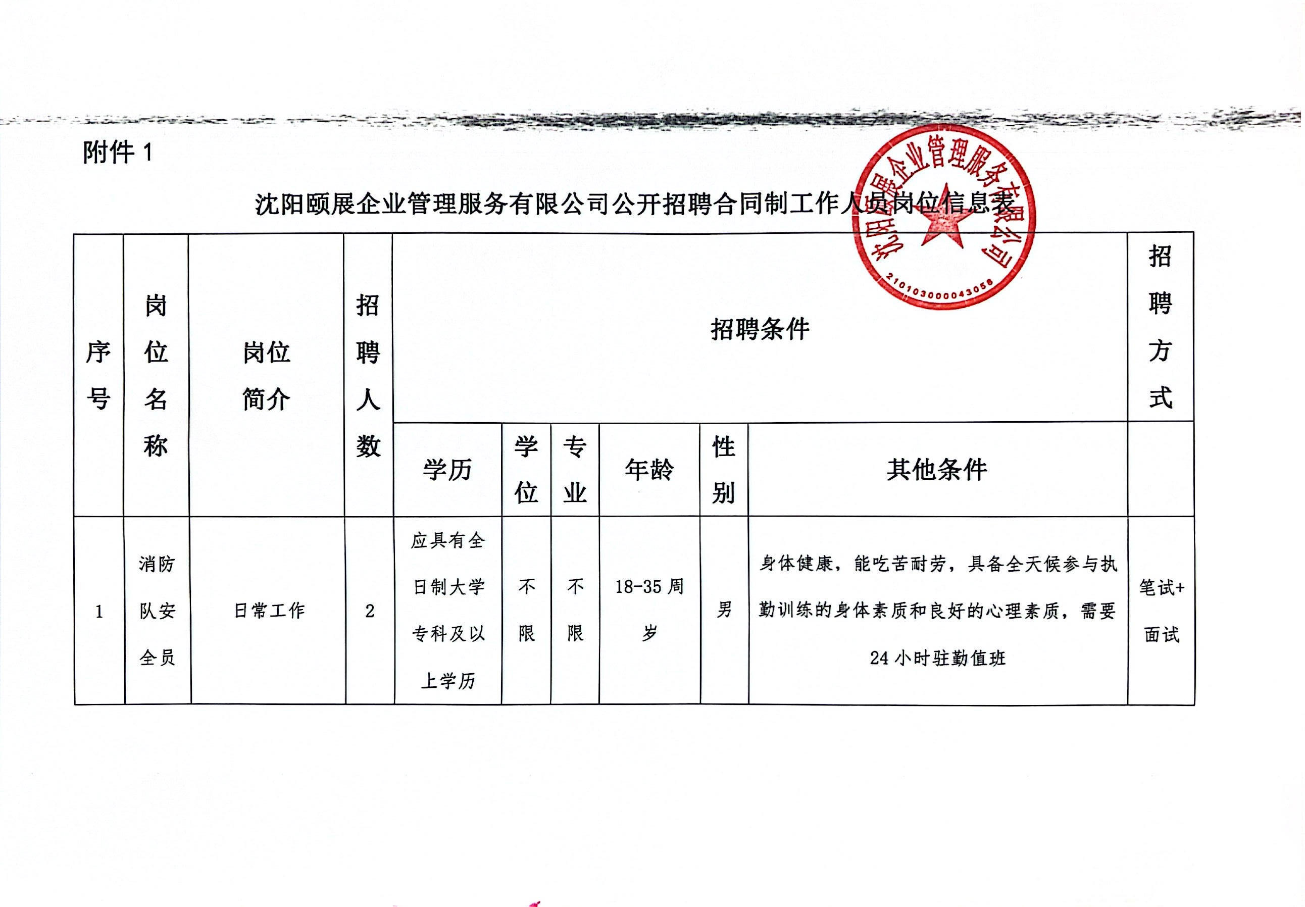 招聘单位:沈阳颐展企业管理服务有限公司
